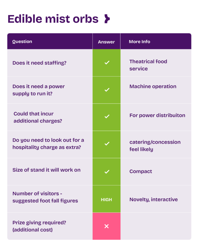 The bubbles create a mesmerising visual display while delivering an unexpected tasting experience. This whimsical and highly interactive activation encourages adults to play, instantly making your brand stand out as the most fun and creative in the hall.