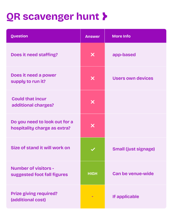 Scanning codes reveals clues, questions, or brand messages that guide participants through the experience. This guided exploration ensures that every key area of your activation is visited, preventing “dead zones” and maximizing foot traffic.
